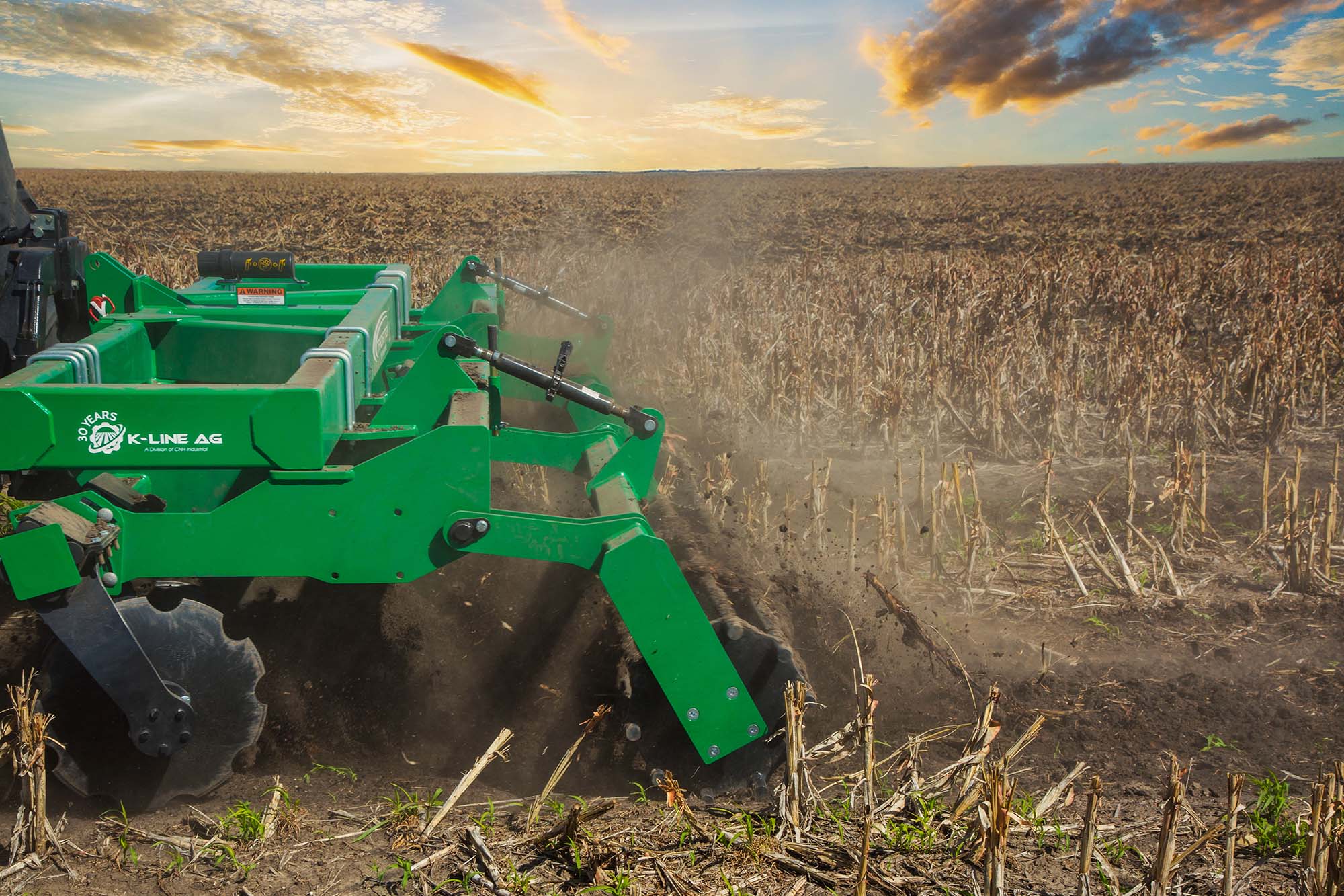 Crumbler roller follows behind breaking down the soil and cloddy dirt