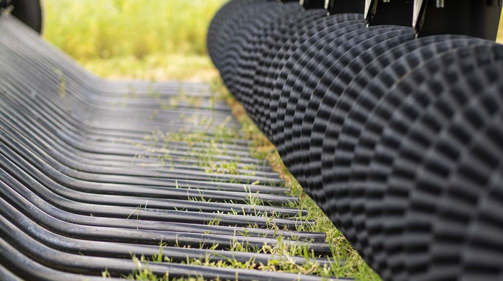 Patented Lay-bar System: Shifts stubble aside to boost the cutting power of self-sharpening discs.