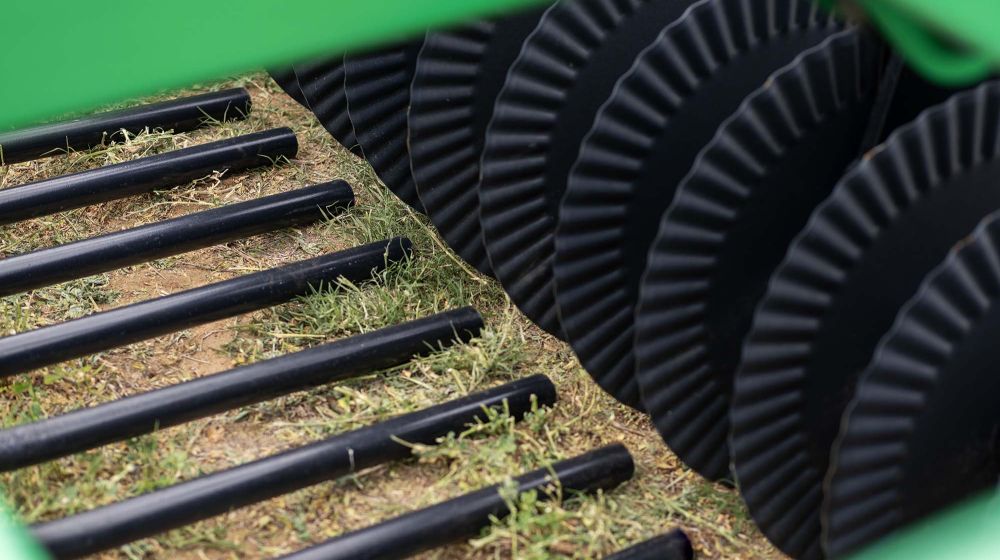 The Trashcutter® uses self-sharpening discs to cut stubble into short pieces and lay it to one side. This innovative design improves how trash and stubble are managed on the field.